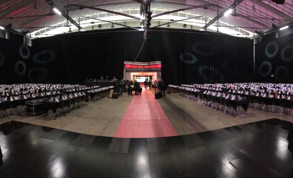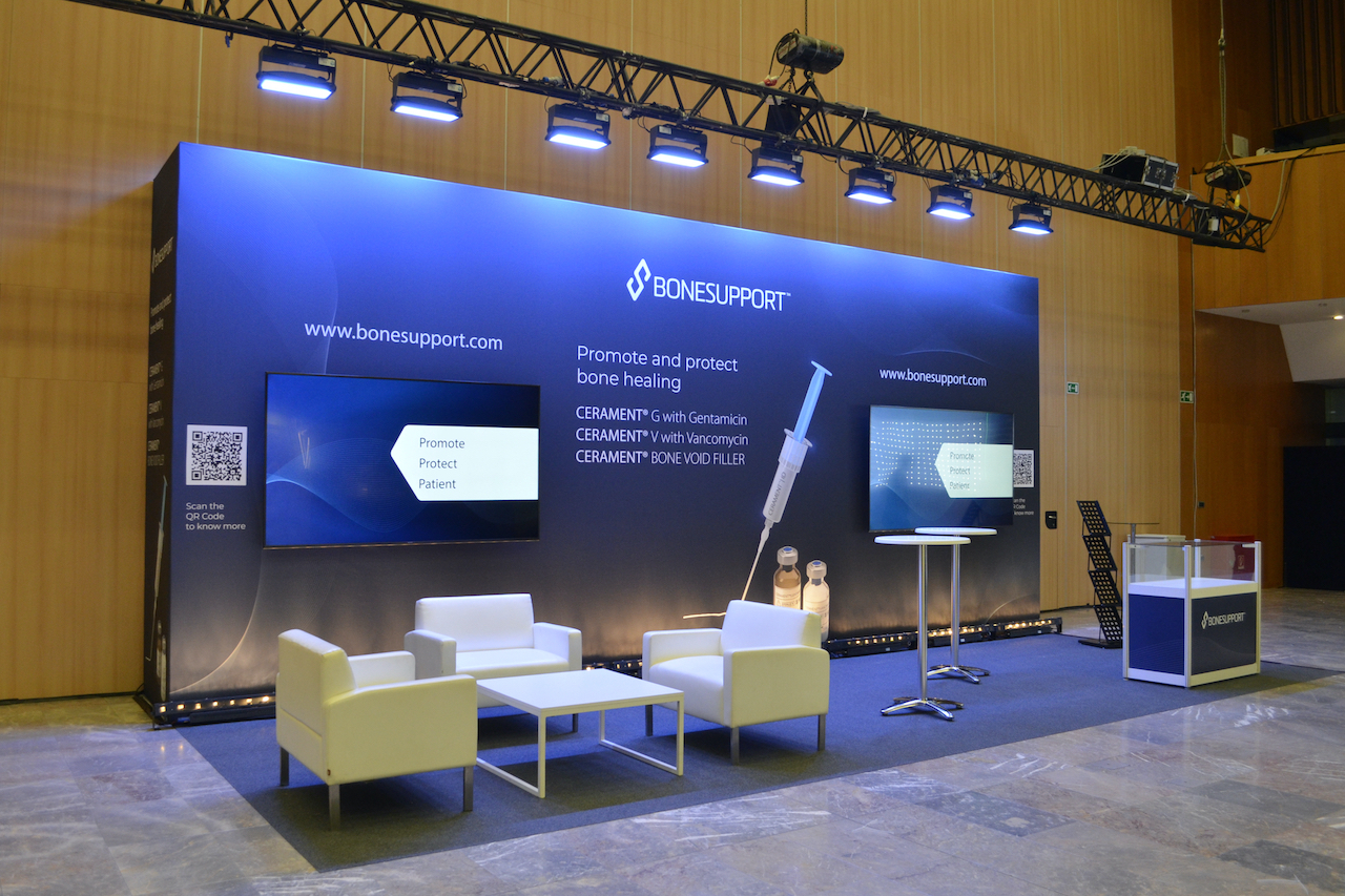Za sejemsko dejavnost smo po željah naročnika dostavili in zmontirali stojnico. Odlikuje jo izjemna modularnost, saj je v ozadju blockout tkanine s printom enostaven aluminjast profil, ki ga s posamezniki elementi dograjujete do željene velikosti.