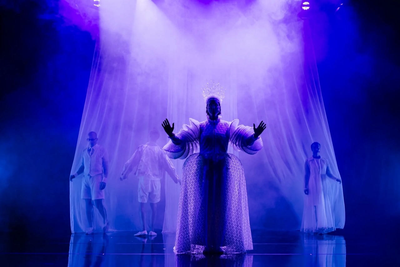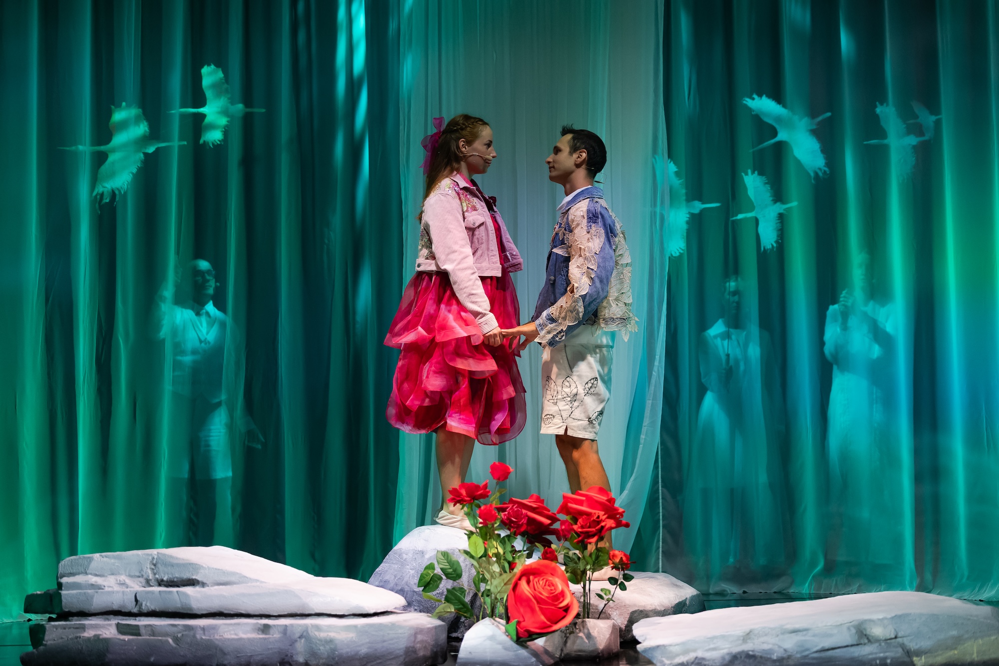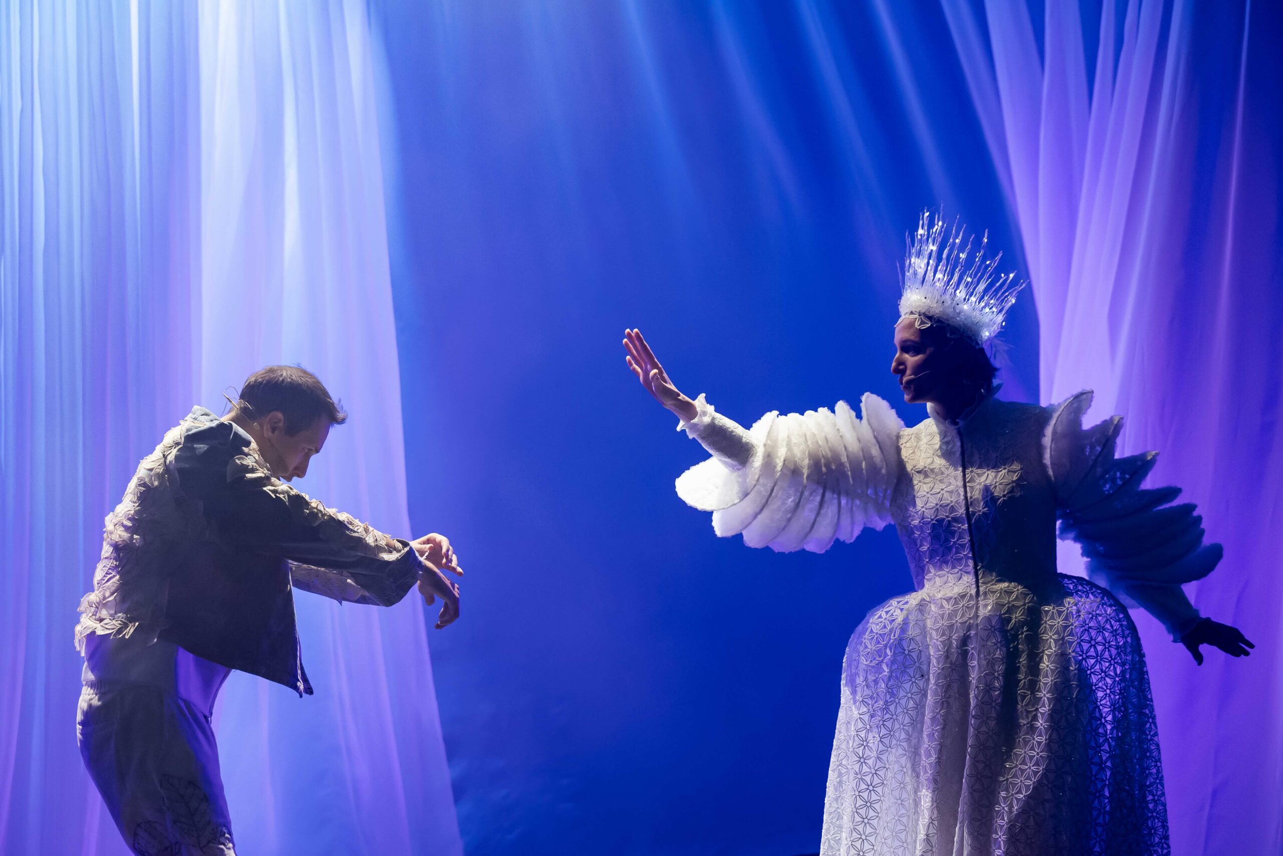 Scenografija sledi čustvenemu in simbolnemu potovanju glavnih protagonistov. Odrska zasnova odraža preobrazbo letnih časov, zrcali evolucijo človeške duše skozi vizualne prehode med svetlobo in senco, mrazom in toploto. Posebej ukrivljen sistem vodil TRUMPF 95 in zavese iz materialov za posebne učinke, omogočajo lahkotno spreminjanje scen. Gibanje tkanin pooseblja sile narave.