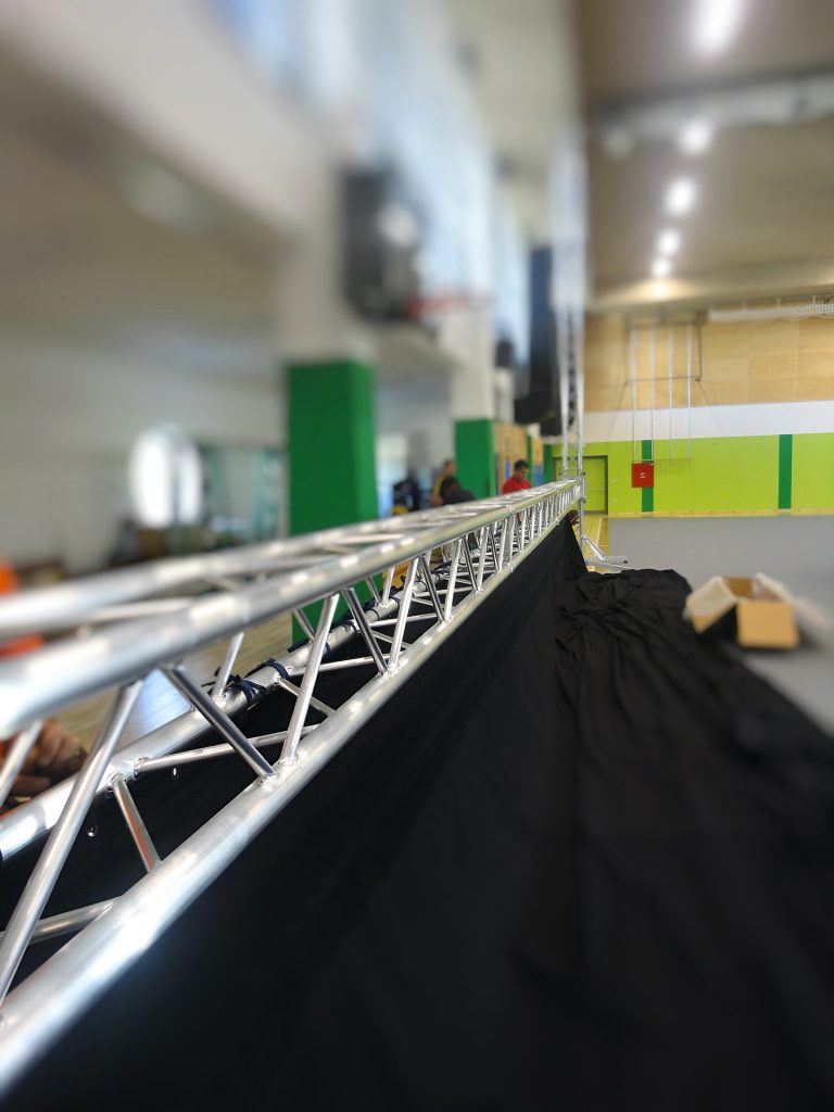 Sami smo prispevali odrske enote Match, ki pa so bile tokrat precej posebne. Da smo lahko v popolnosti uporabili dani prostor za prireditveni prostor, smo posebaj po meri namestili odrske enote posebnih oblik.